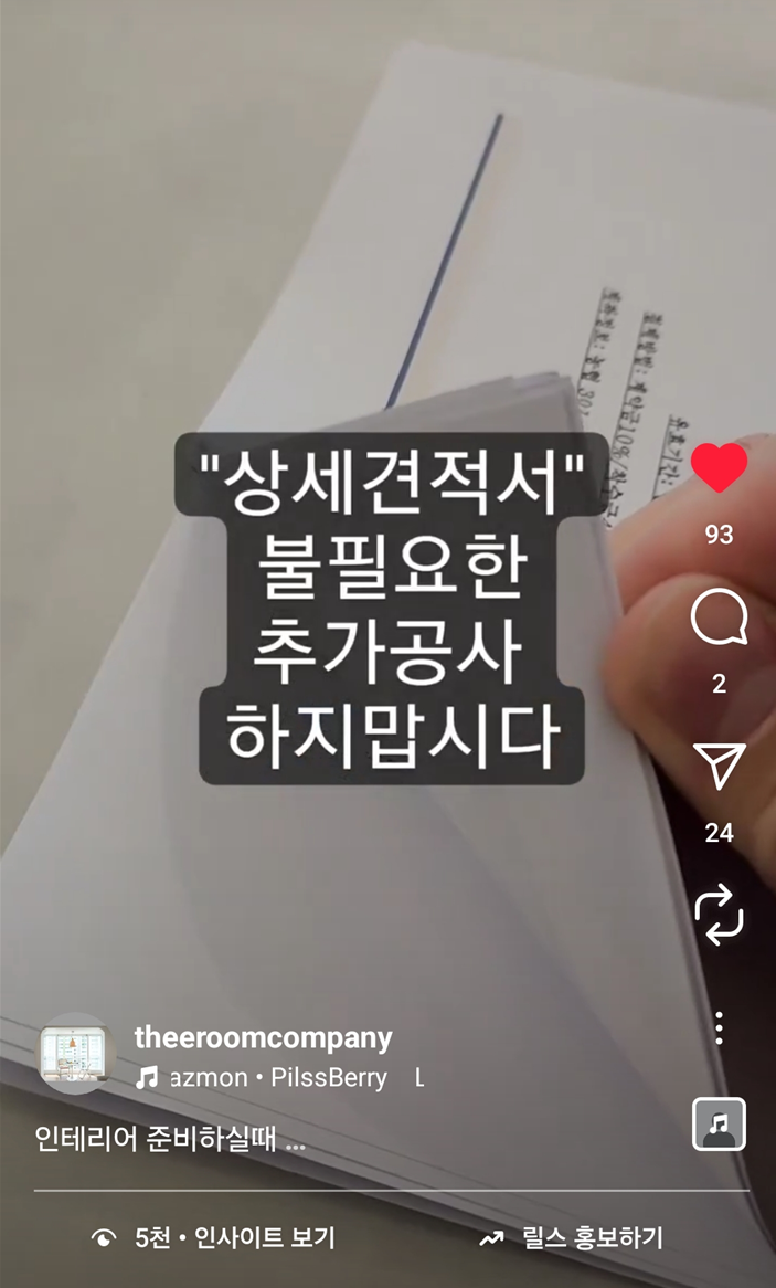 ▲ 인스타 그램 상세한 견적서 동영상